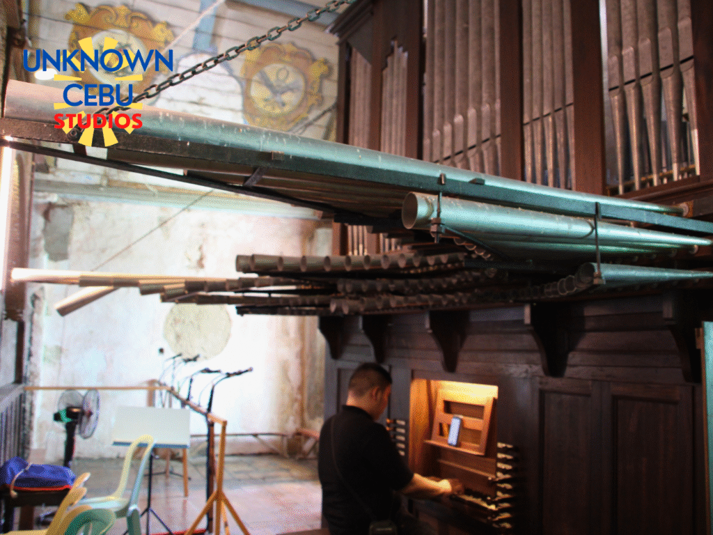 The pipe organ of Boljoon is more than just an instrument; it’s a National Cultural Treasure whose survival is a gripping tale of architectural defense, colonial politics, and relentless modern conservation. Nestled within the Archdiocesan Shrine of Patrocinio de María Santísima, this masterpiece is inextricably linked to the church’s identity as an iglesia-fortaleza (fortress-church). The massive coral stone walls and the 18th-century watchtower belfry—equipped with cannon ports—were built to defend against constant coastal raids. The decision by the Augustinians to install and protect a complex, costly European instrument like the organ, despite the ever-present military threat, powerfully signifies that liturgical and cultural grandeur were non-negotiable spiritual priorities. This organ is one of only three known surviving Spanish colonial pipe organs in Cebu, and a crucial piece of evidence in Philippine organology. Its proven identity links it to the Otorel family of Palencia, Spain—the same commercial firm responsible for the organs in Dalaguete and Maribojoc—confirming it as a product of the late-colonial drive for standardization.
