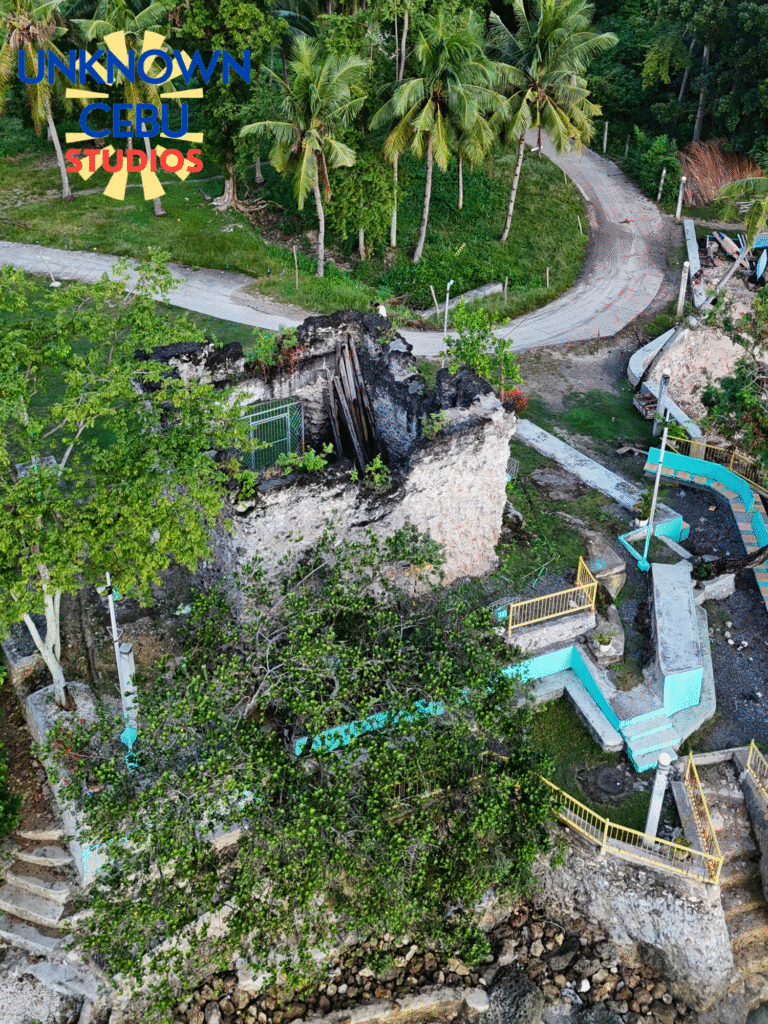 To understand the architecture of this ruin, you have to look past the moss and the missing roof. This is a classic example of the “Baluarte” system orchestrated by the legendary warrior-priest, Fr. Julian Bermejo, the “El Padre Capitan” of Boljoon. While the town center had its own defenses (the Kiosko built in 1768), Obong was the strategic back door. Constructed from rough-hewn coral stone, likely quarried through the grueling polo y servicio labor system under direction of the priests, (though it could also be entirely possible that the natives were motivated by their own need to defend themselves) the walls were bound together by argamasa, a lime mortar that local oral history insists was strengthened with egg whites. It functioned as part of a massive, analogue “internet of stone” that stretched from Santander to Carcar. When a sentinel at Obong spotted a sail on the horizon, he didn’t just panic; he lit a signal fire or blew a budyong (conch shell), triggering a chain reaction that would ring the church bells in the Poblacion, miles away.